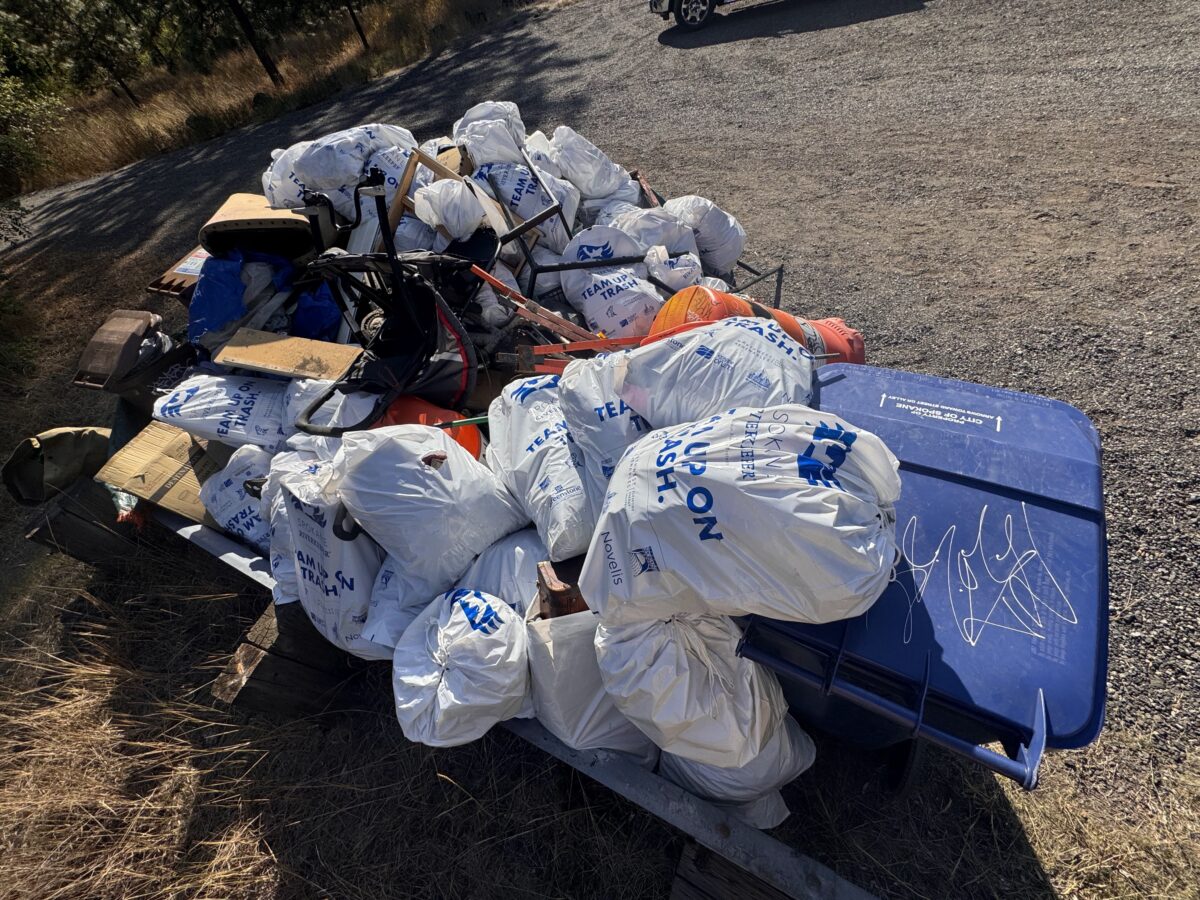 With stations stretching from Liberty Lake to downtown Spokane, volunteers wielded grabbers and trash bags along riverbeds, risking wet feet, twisted ankles, and the occasional patch of poison ivy. Within a few hours, large objects like mattresses, car parts, scrap metal, and lawn chairs began piling up alongside bags full of trash along the Centennial Trail, later to be picked up and taken away by the truckload.
